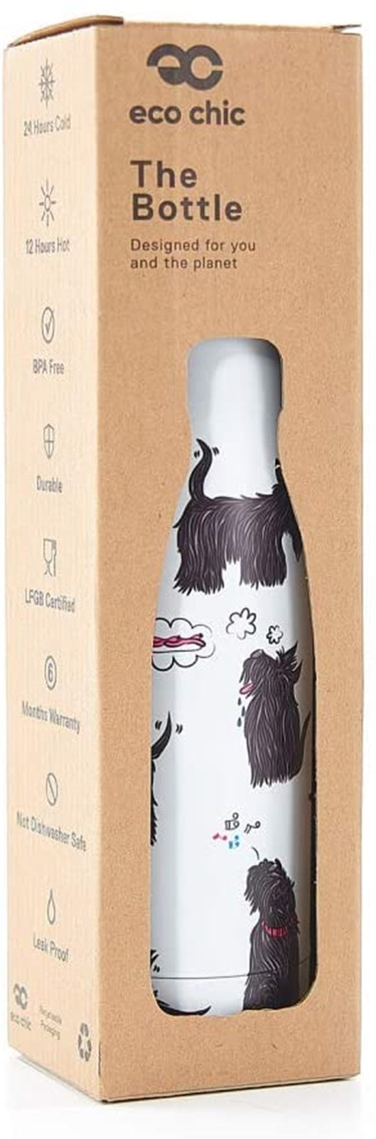 Eco Chic Reusable Thermal Bottle | Stainless Steel Insulated Travel Bottle with Leakproof Lid | Eco-Friendly and Reusable for Hot & Cold Drinks (White Scatty Scotty, 500ml/17oz)