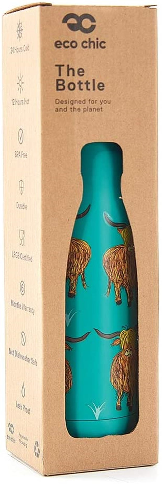 Eco Chic Reusable Thermal Bottle | Stainless Steel Insulated Travel Bottle with Leakproof Lid | Eco-Friendly and Reusable for Hot & Cold Drinks (Teal Highland Cow, 500ml/17oz)