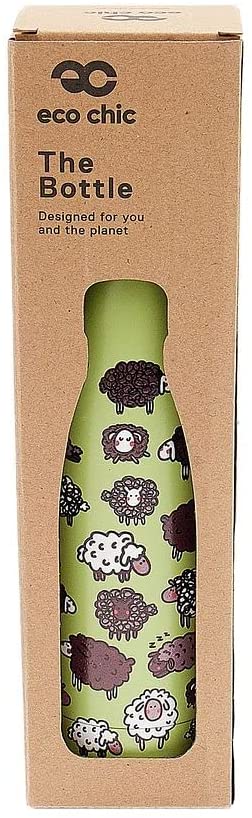 Eco Chic Reusable Thermal Bottle | Stainless Steel Insulated Travel Bottle with Leakproof Lid | Eco-Friendly and Reusable for Hot & Cold Drinks (Green Sheep, 500ml/17oz)