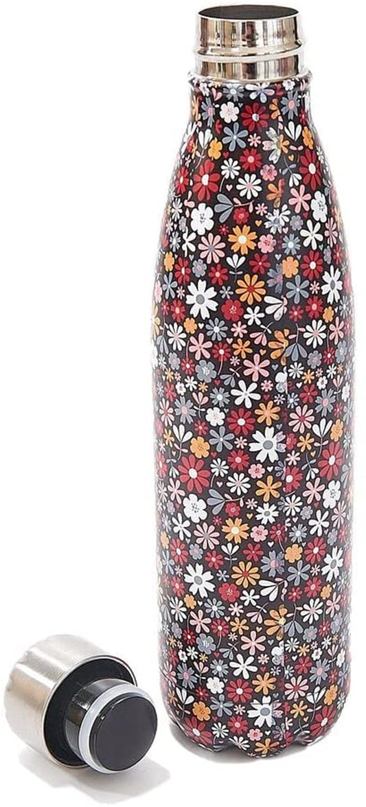 Eco Chic Reusable Thermal Bottle | Stainless Steel Insulated Travel Bottle with Leakproof Lid | Eco-Friendly and Reusable for Hot & Cold Drinks (Black Ditsy, 500ml/17oz)