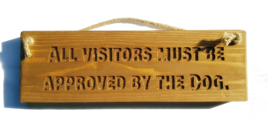 Wooden engraved Rustic 30cm Sign Natural "All visitors must be approved by the dog"