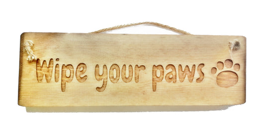 Wooden engraved Rustic 30cm Sign Natural "Wipe your paws"