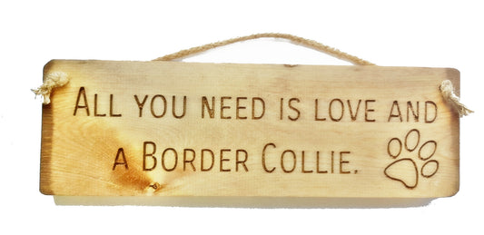 Wooden engraved Rustic 30cm DOG Sign Natural "All You Need Is Love and a Border Collie"