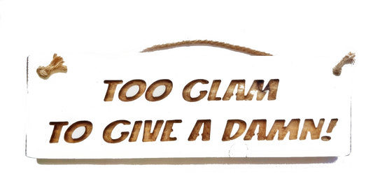 Wooden engraved Rustic 30cm Sign White "Too glam to give a damn"
