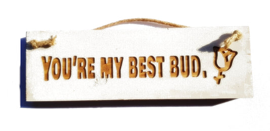 Wooden engraved Rustic 30cm Sign White "You're my best bud"