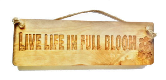 Wooden engraved Rustic 30cm Sign Natural "Live Life in Full Bloom"