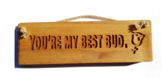 Wooden engraved Rustic 30cm Sign Natural "You're my best bud"
