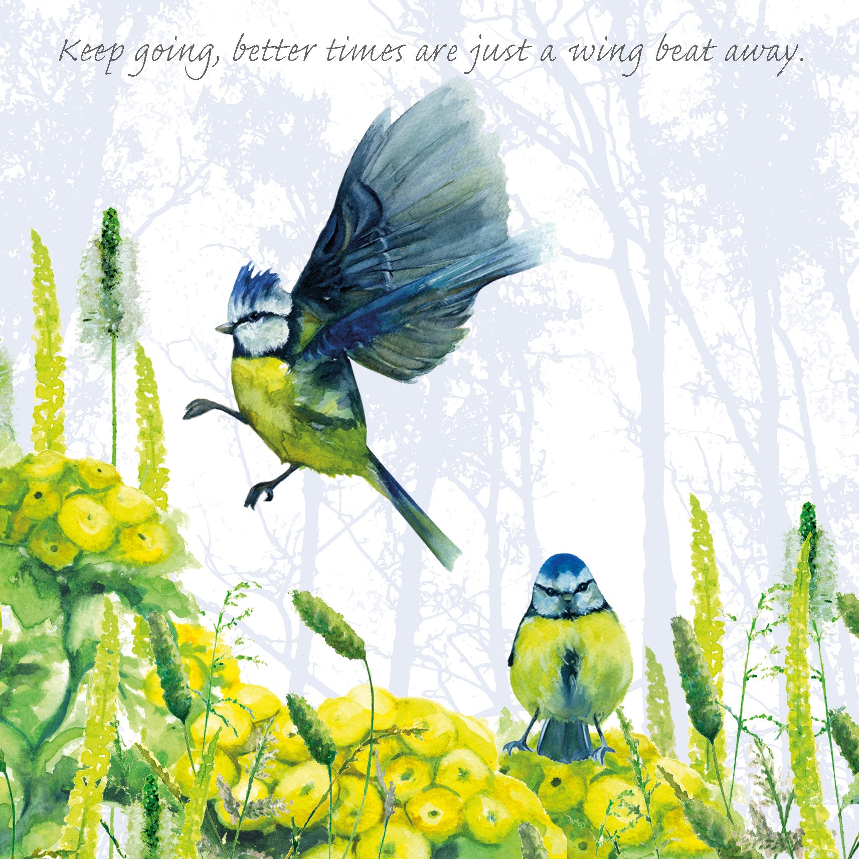 Blue Tits Greeting Card-Keep going, better times are just a wing beat away.