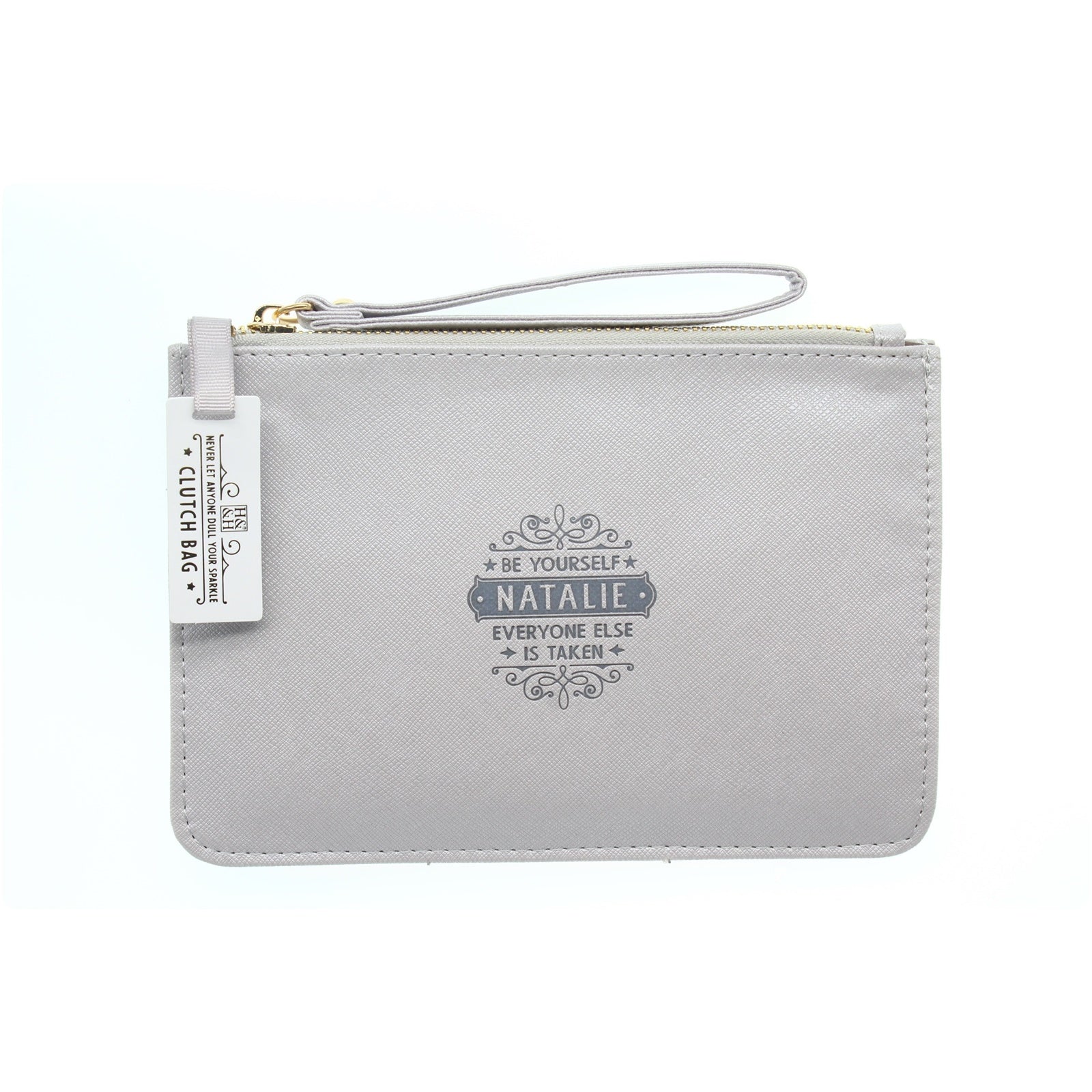 Clutch Bag With Handle & Embossed Text "Natalie"