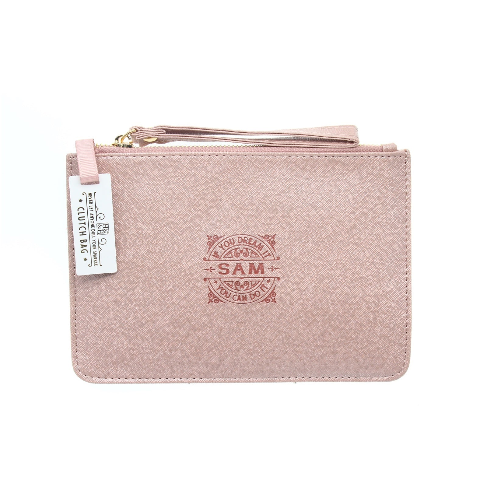 Clutch Bag With Handle & Embossed Text "Sam"