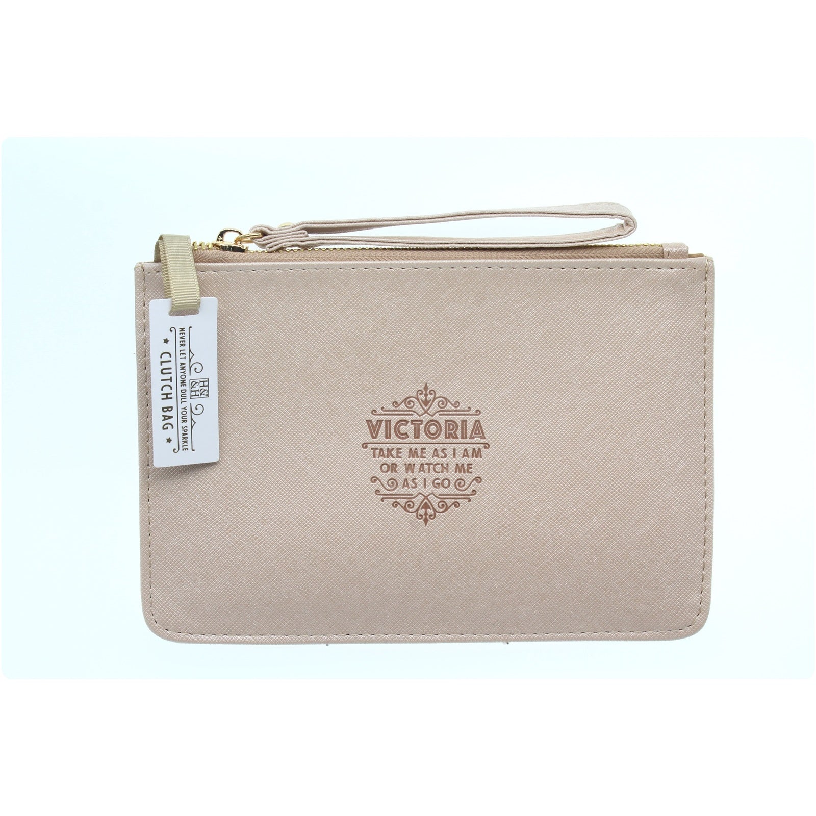 Clutch Bag With Handle & Embossed Text "Victoria"