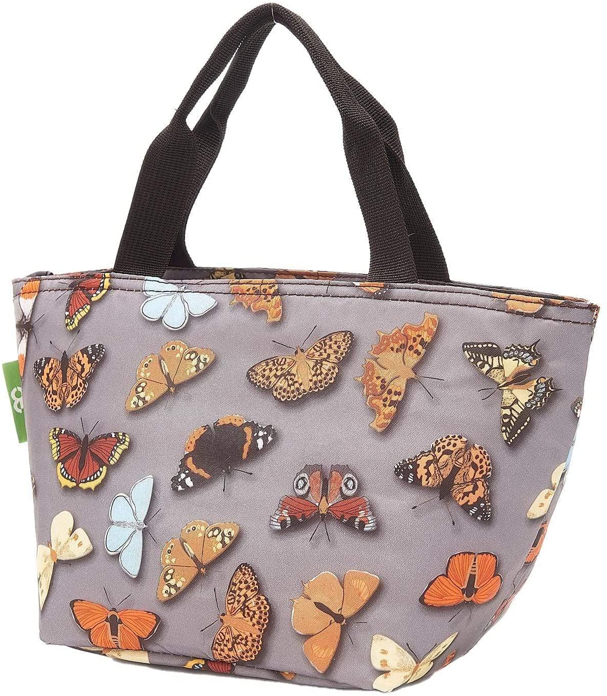 Eco Chic Lightweight Foldable Lunch Bag (Wild Butterflies Grey)