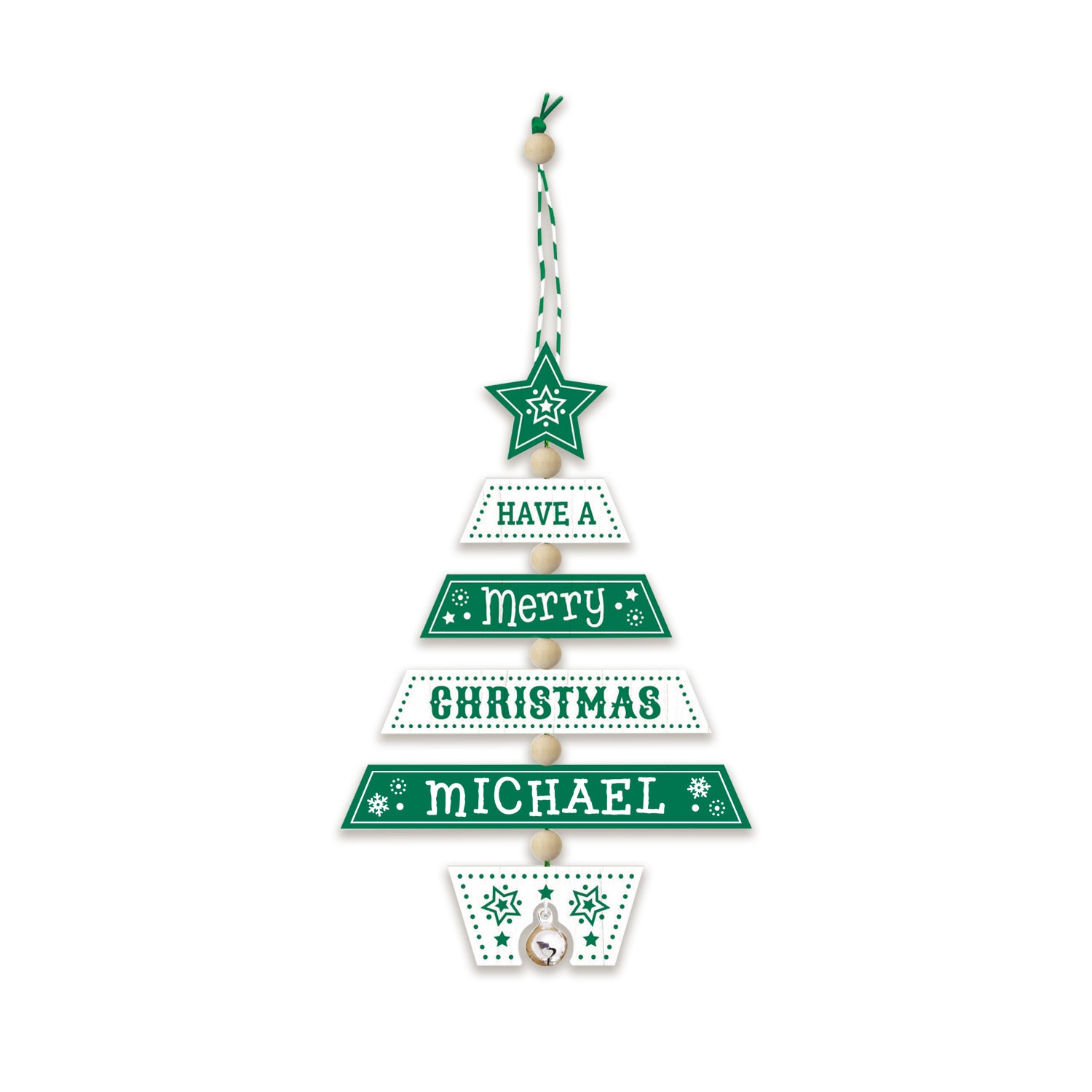 These charming, personalised wooden trees in festive red and green, are strung with beads and topped with a heart or star to complete the perfect picture.