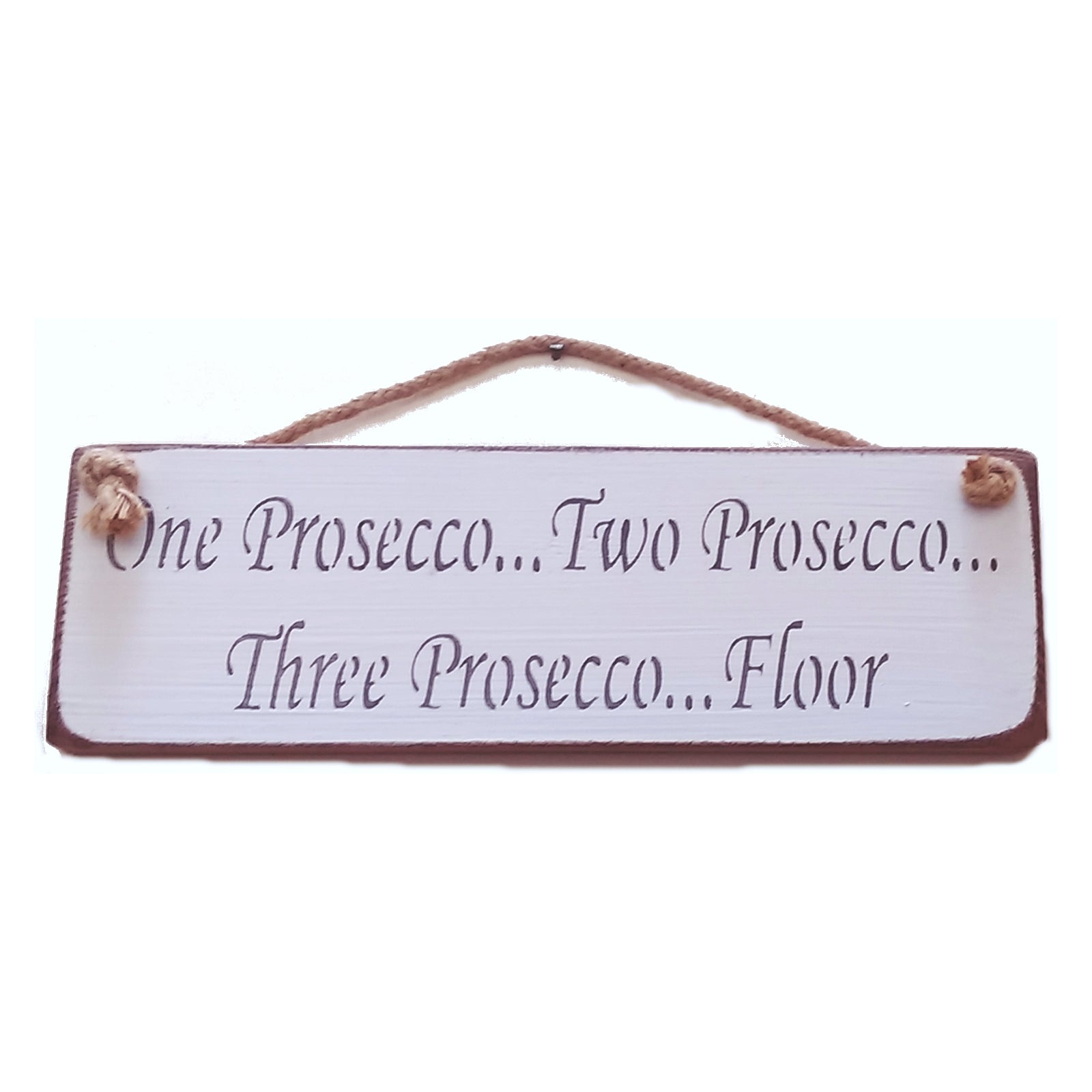 One Prosecco...Two Prosecco....Three Prosecco...Floor - Vintage shabby chic Wooden Sign