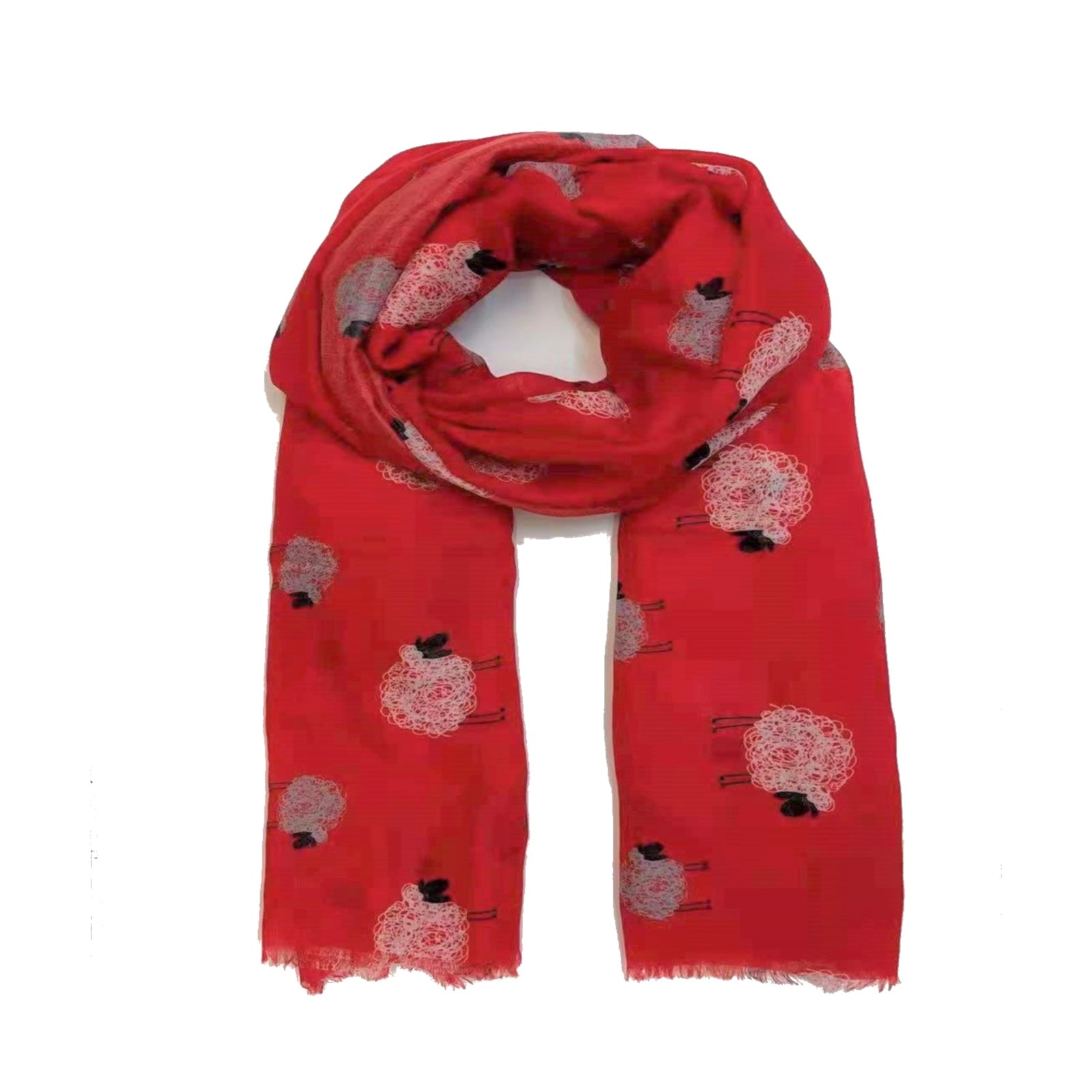 Red Sheep Print Scarf