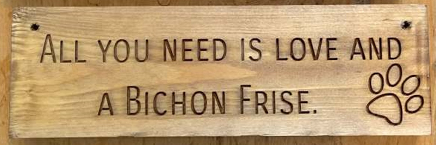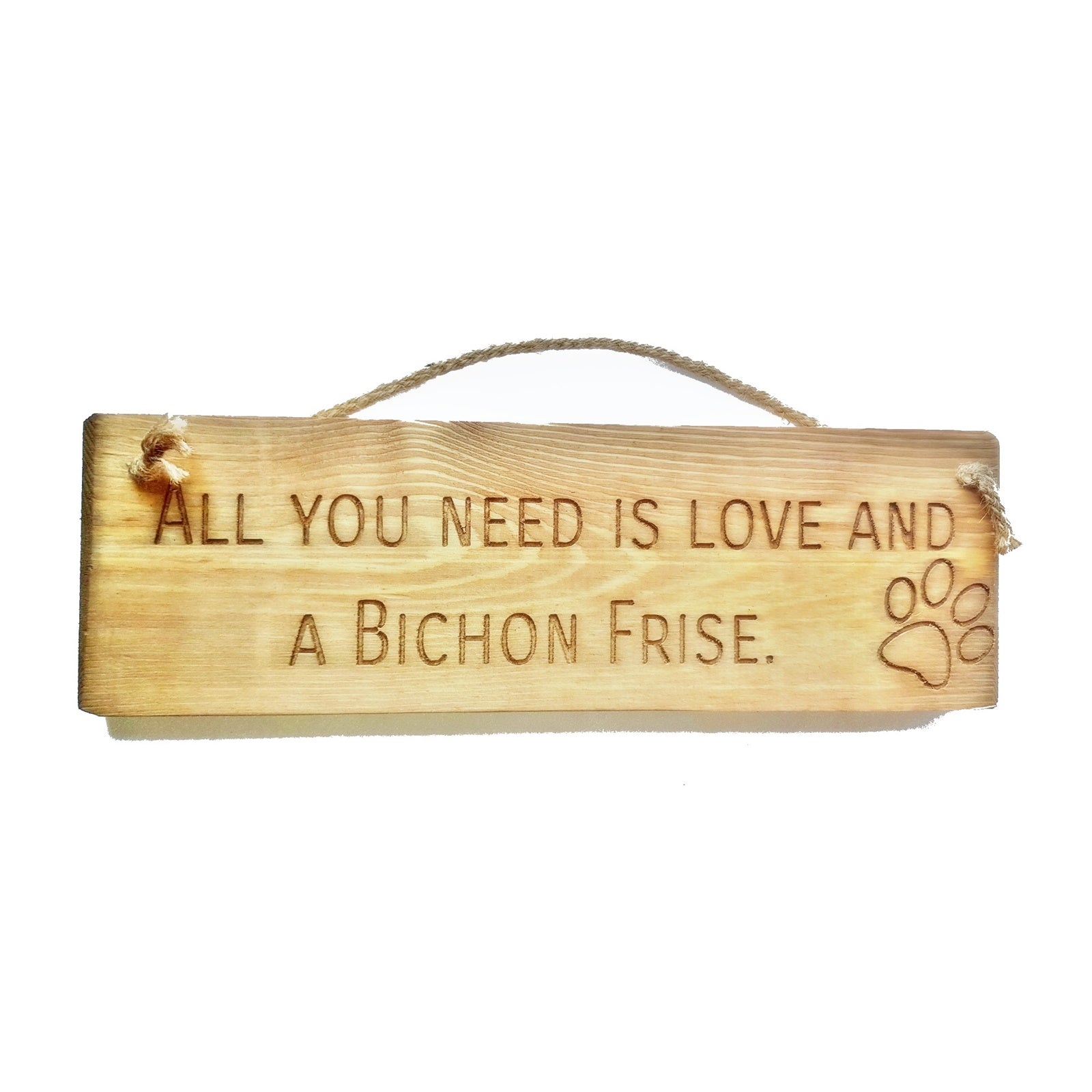 Wooden engraved rustic 30cm DOG Sign Natural "All You Need Is Love and a Bichon Frise"