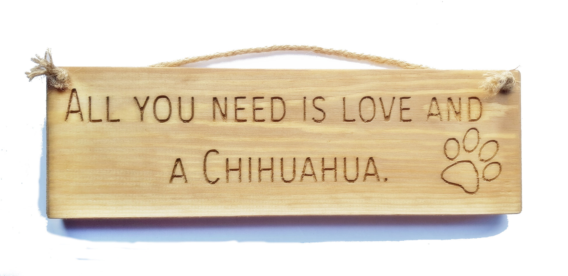 Wooden engraved rustic 30cm DOG Sign Natural "All You Need Is Love and a Chihuahua"
