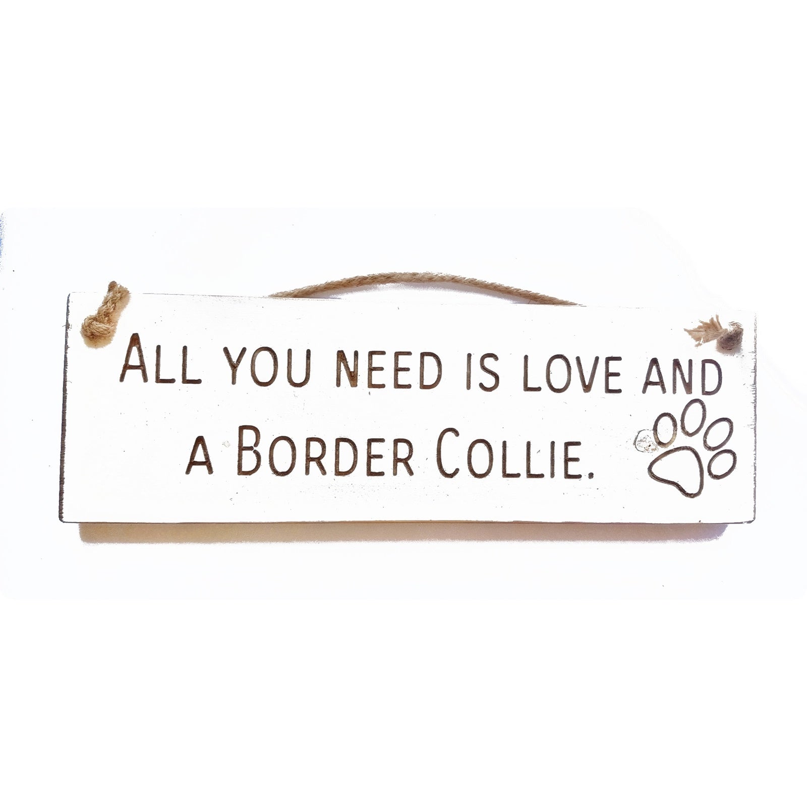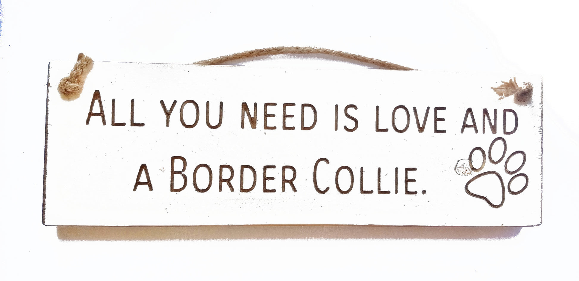 Wooden engraved Rustic 30cm DOG Sign White "All You Need Is Love and a Border Collie"